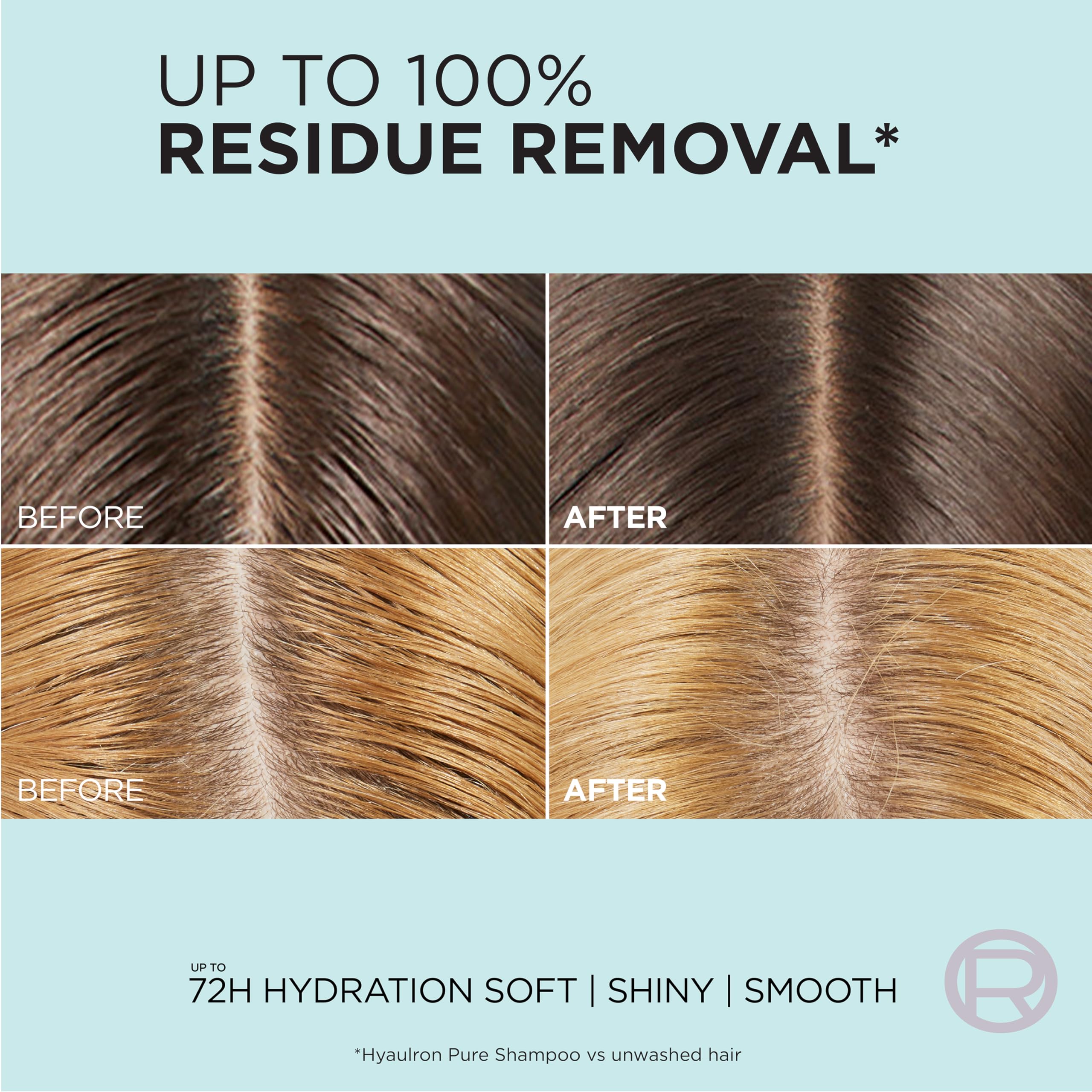 - Purifying and Rehydrating Routine: Gently exfoliate with the Hyaluron + Pure Oil Erasing Serum Scalp Treatment. Then, clarify with the Hyaluron + Pure 72H Purifying Shampoo. Finally, rehydrate with the Hyaluron + Pure 72H Rehydrating Conditioner