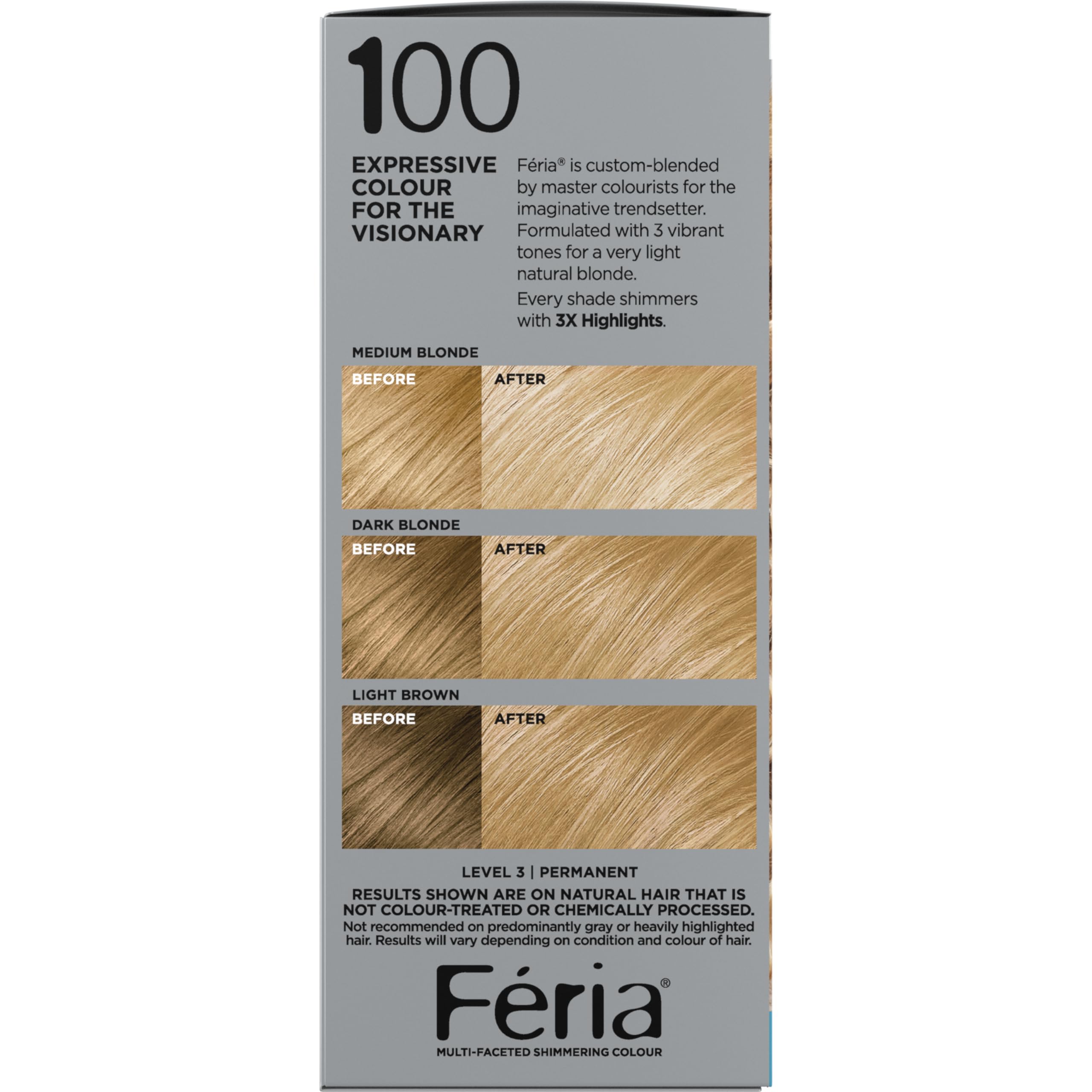 - Multi-Faceted Permanent Hair Color: Known for shimmering and edgy colors, Feria permanent hair dye kits transform hair from blah to brilliant; Our multi-faceted shimmering hair dye with 3X highlights delivers intensified, brilliant results. Pack of 2