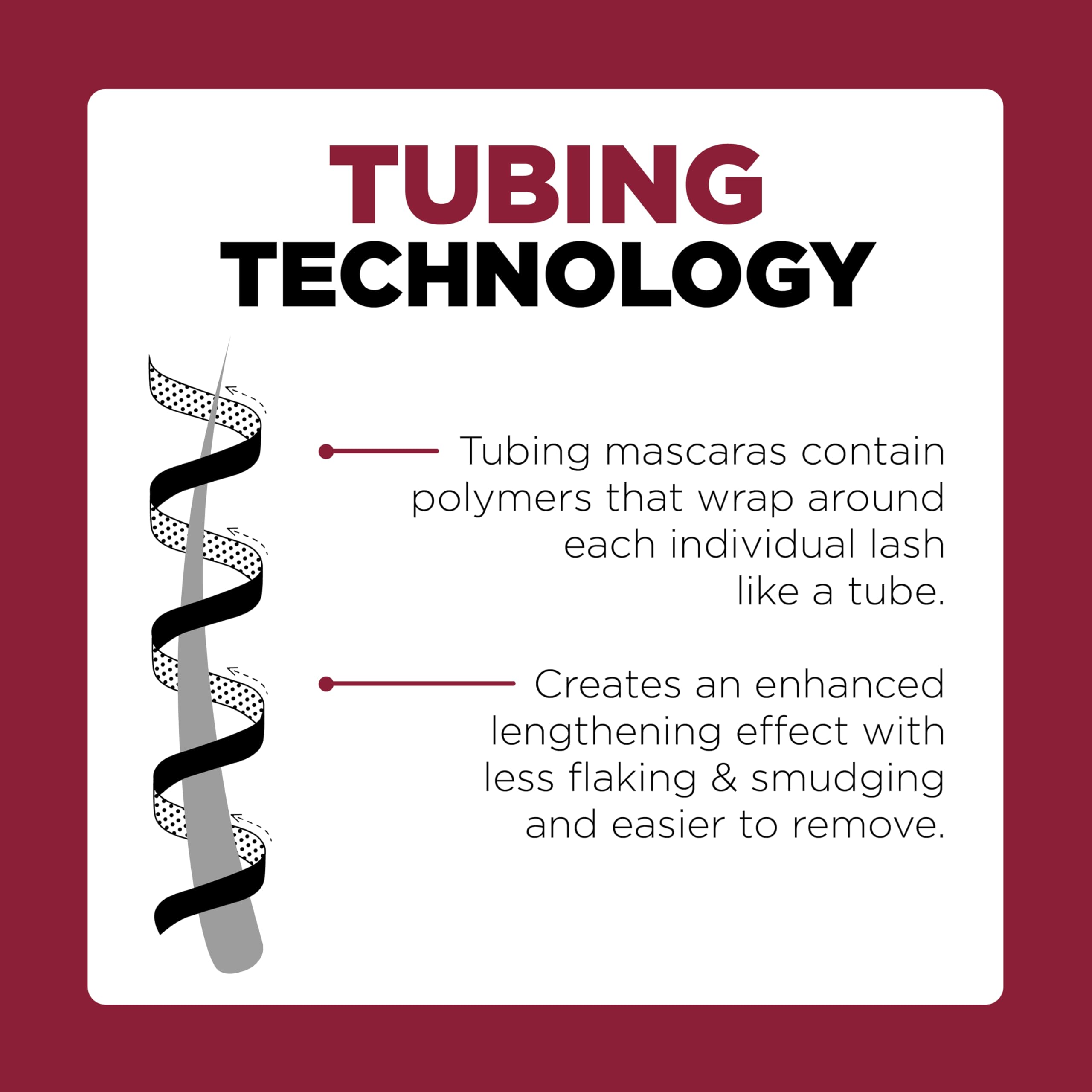 - L’Oreal Tubing Technology: Tubing mascaras contain polymers that wrap around each individual lash like a tube that creates an enhanced lengthening effect with less flaking and smudging and easier to remove.