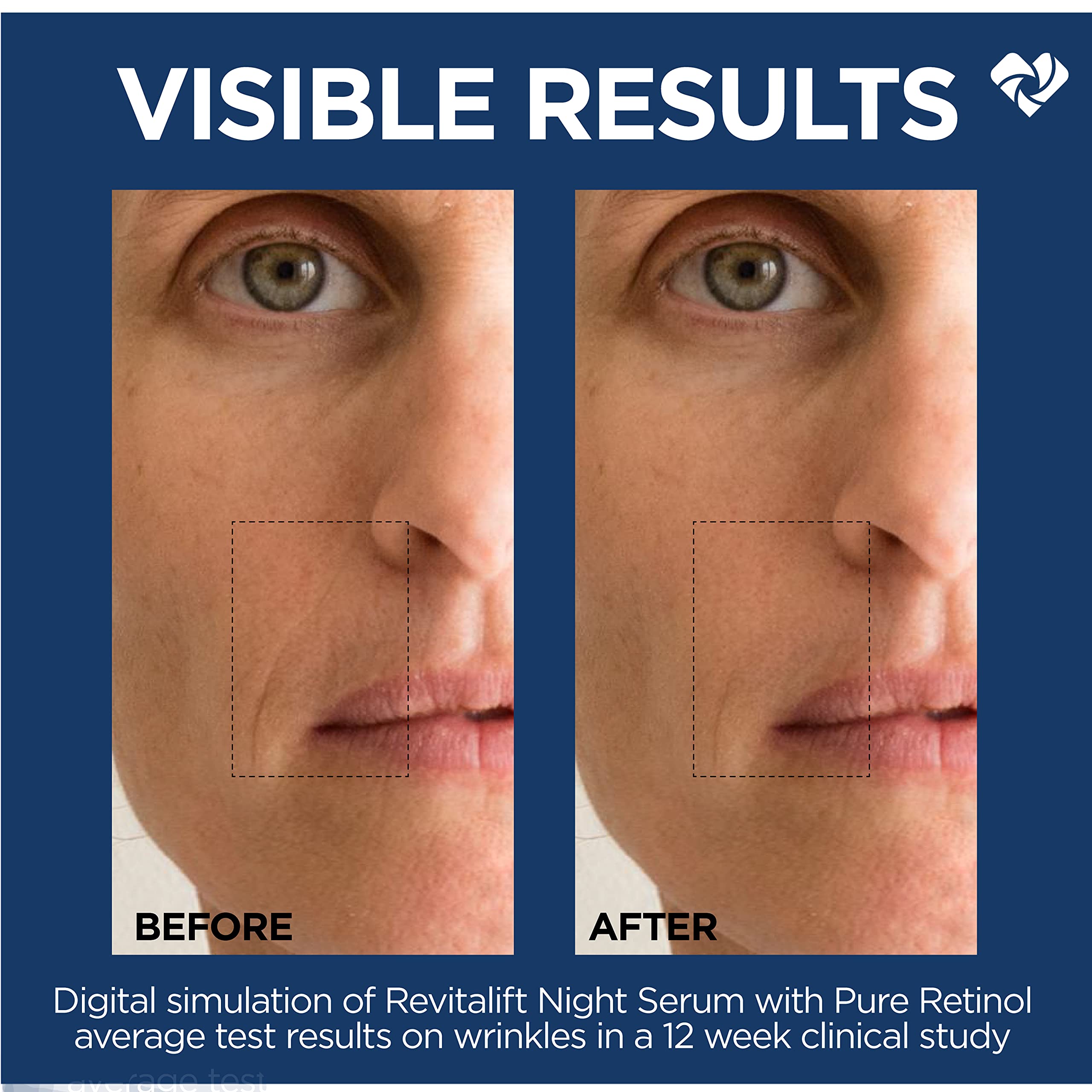 - Visibly Reduce Wrinkles: Revitalift Night Retinol Serum for Face with 0.3% Pure Retinol has an optimal concentration and is dermatologist-validated for visible results. Reduces wrinkles, even deep ones, while smoothing texture and moisturizing