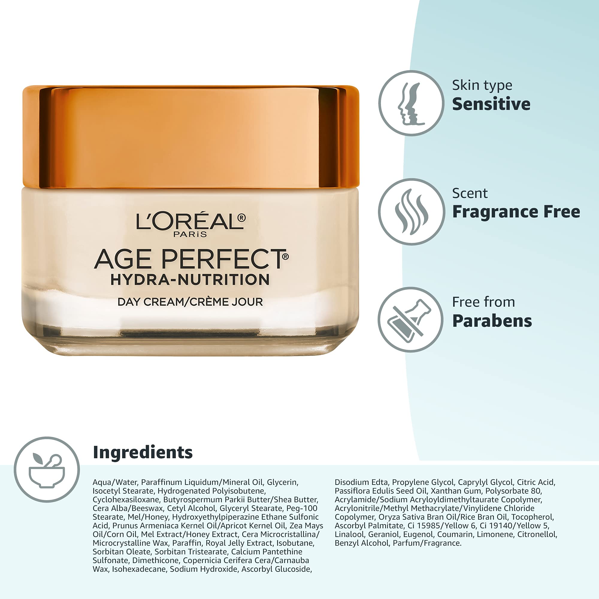 L’Oreal Paris Skincare Age Perfect Hydra-Nutrition Anti-Aging Day Cream with Manuka Honey Extract, 1.7 Ounce